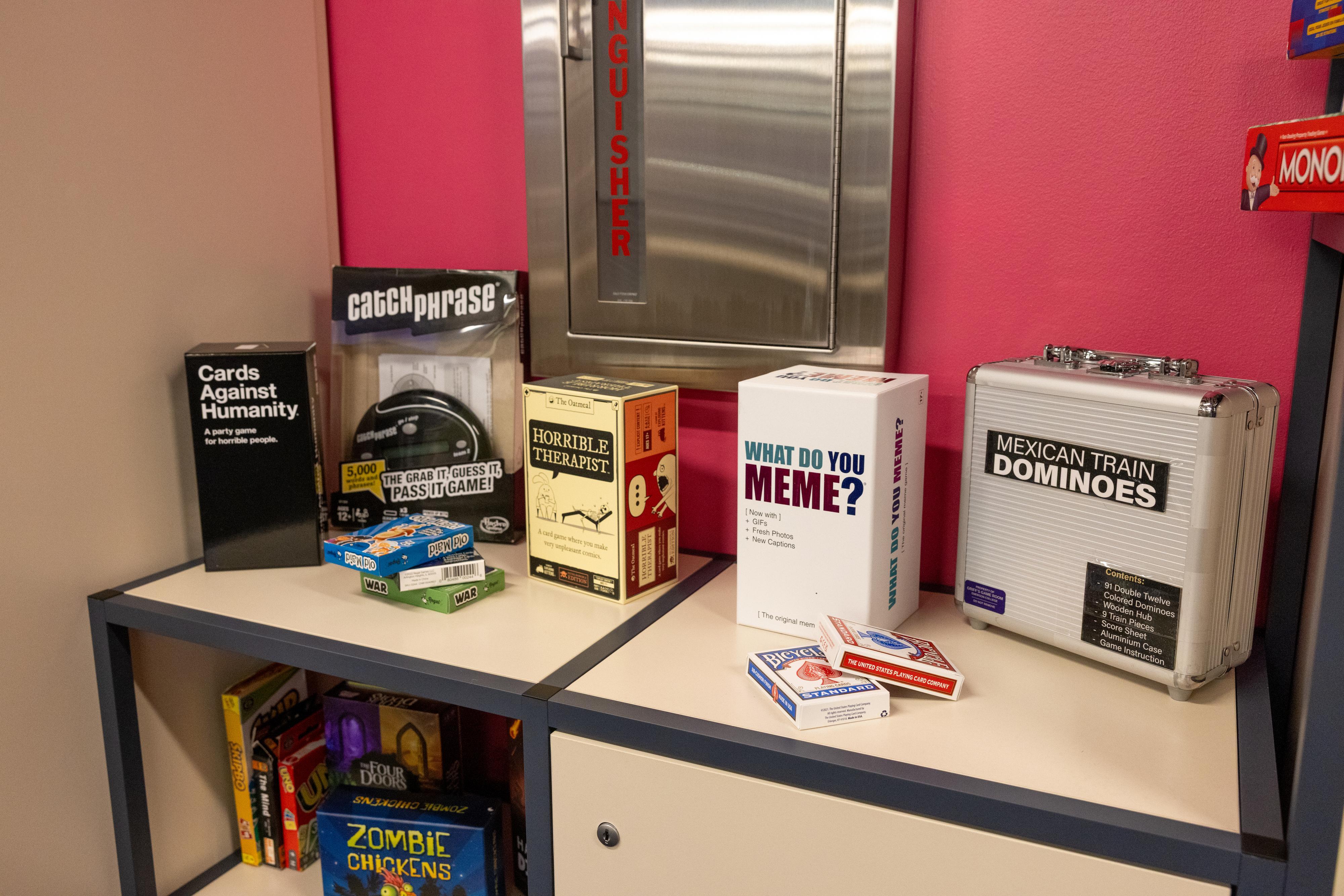 - Game Room equipment and inventory (i.e. game tables, arcade machines, video game consoles, cues, balls, board games, etc.) are not permitted to be removed from the Game Room.