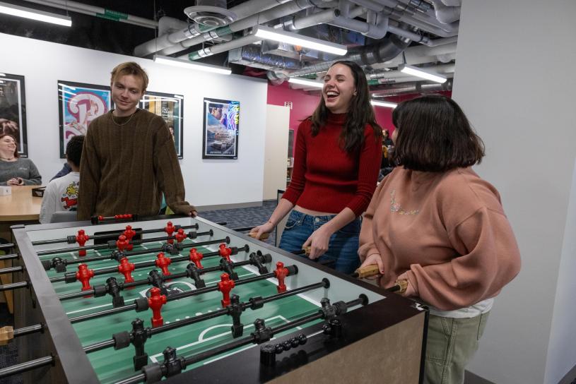 At Emerson, we know that connection, rest and play are essential to a vibrant community! Griff's Game Room is available to students for casual fun, friendly competition and stress-free downtime. There are a variety of pastimes available, from board and classic arcade games to pool, air hockey and foosball.